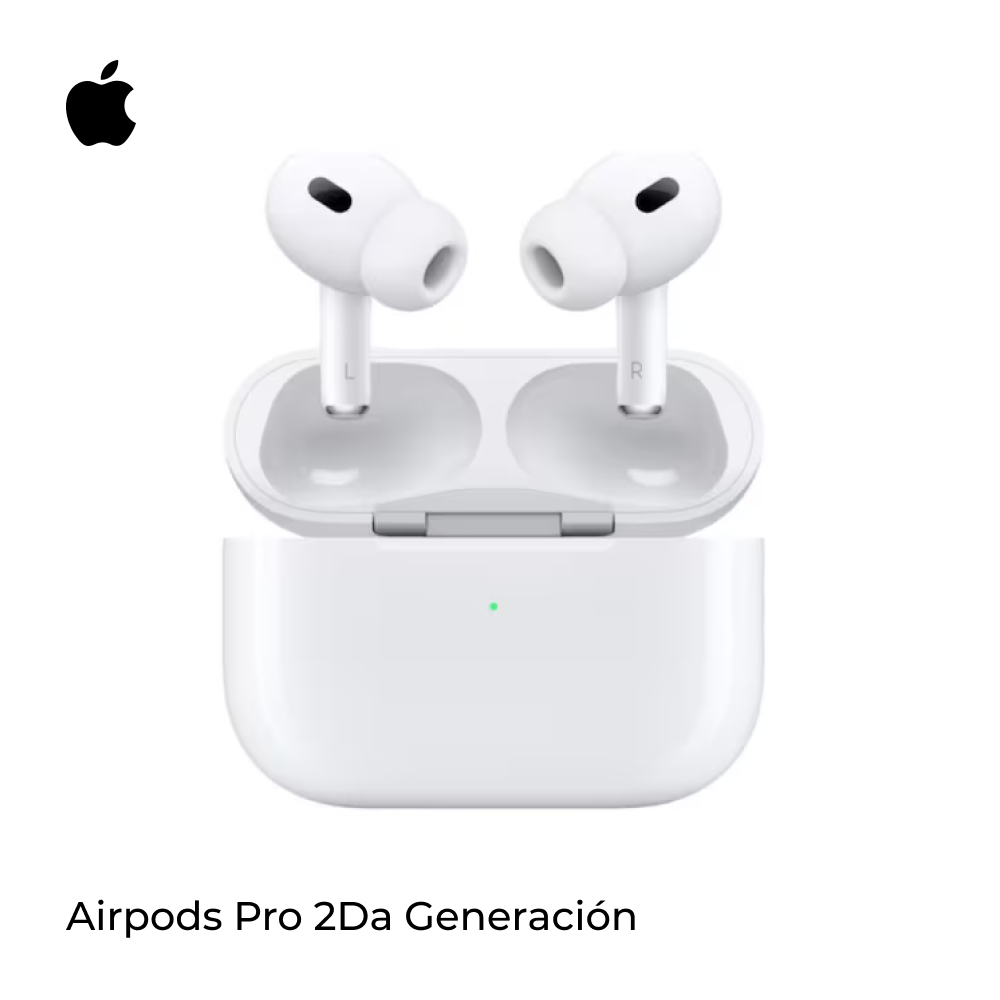 AirPods Pro (segunda generación) OEM con Cancelación Activa de Ruido. El modo Ambiente adaptable reduce el ruido exterior y, al mismo tiempo, el audio espacial personalizado te envuelve en sonido.